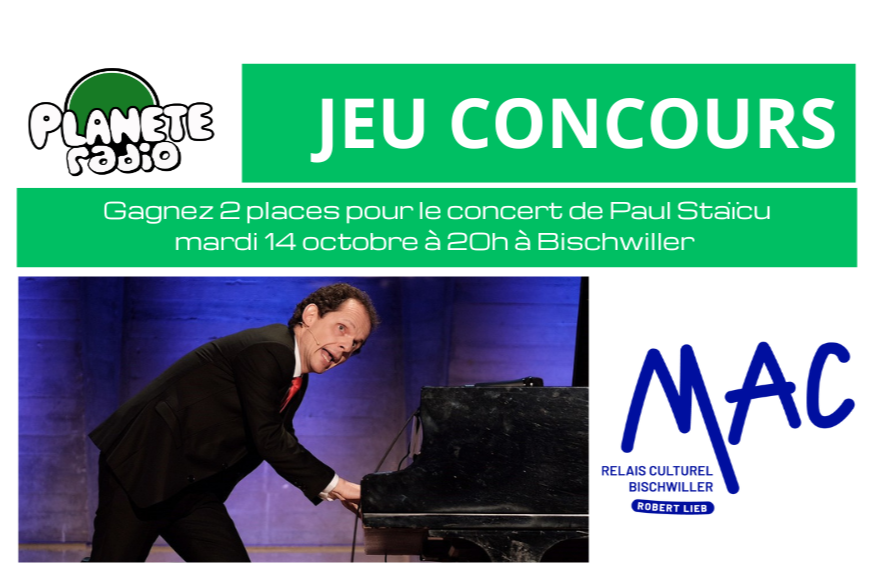Du 29 septembre au 05 octobre, tentez de gagner 2 places pour le concert de musique classique de Paul Staïcu, ce mardi 14 octobre à 20h, à l’église protestante à Bischwiller, dans le cadre du festival Vibration(S) le festival international de musiques classiques organisé par la MAC de Bischwiller.